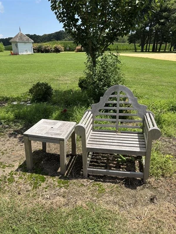 On the second day, we started with several projects, which we had to complete before the wedding! The first one was painting the garden furniture. When we were about to start with this task, we discovered that instead of a paint or stain, we had a varnish in front of us. After realizing this, Maggie and I went to Donnie Tennyson’s local hardware store and bought two cans of a suitable semi-transparent stain (we thought this would be somewhat like a cross between a thin stain and a thicker paint). When we arrived back at Woodlawn, we opened the cans and were very surprised because the two cans of stain, both noted as Cedar color with similar inventory numbers, showed a huge difference in color. However, after we had mixed the paint thoroughly, the color transformed to the same cedar stain we expected. Lesson of the Day: always mix your stains and paints thoroughly. It was then all hands on deck and we seven interns eagerly painted the garden furniture. After about two hours, the furniture shone in its new splendor. Second Lesson of the Day: At the end of the day, mixed paints and a team spirit really matter.